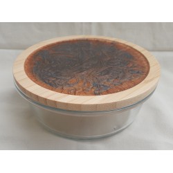 Skleněná miska s bambusovým víčkem od známého švédského bytového obchodního domu zdobená epoxidovou pryskyřicí.